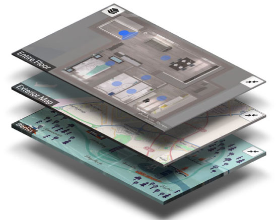 Load multiple maps layers by assigning them scenes and view the angle of direction based on view.
